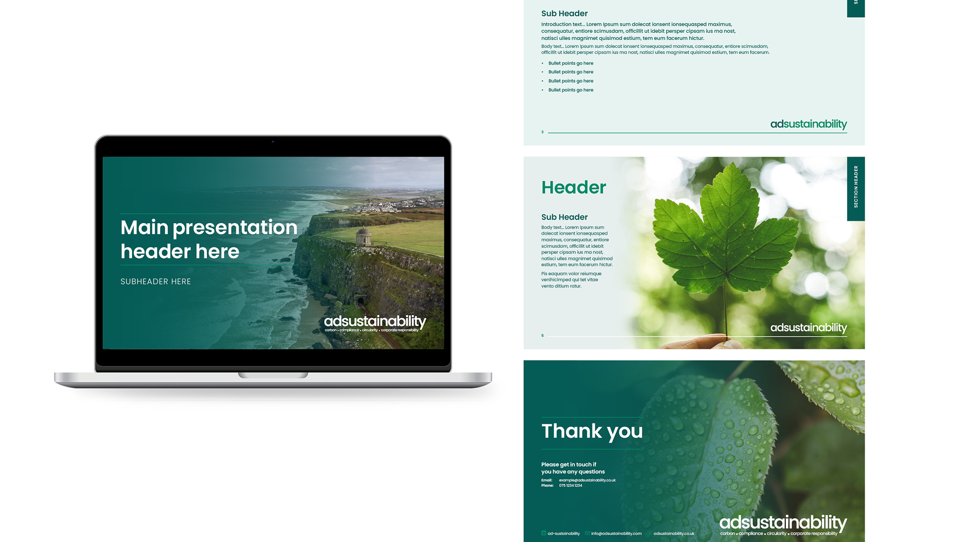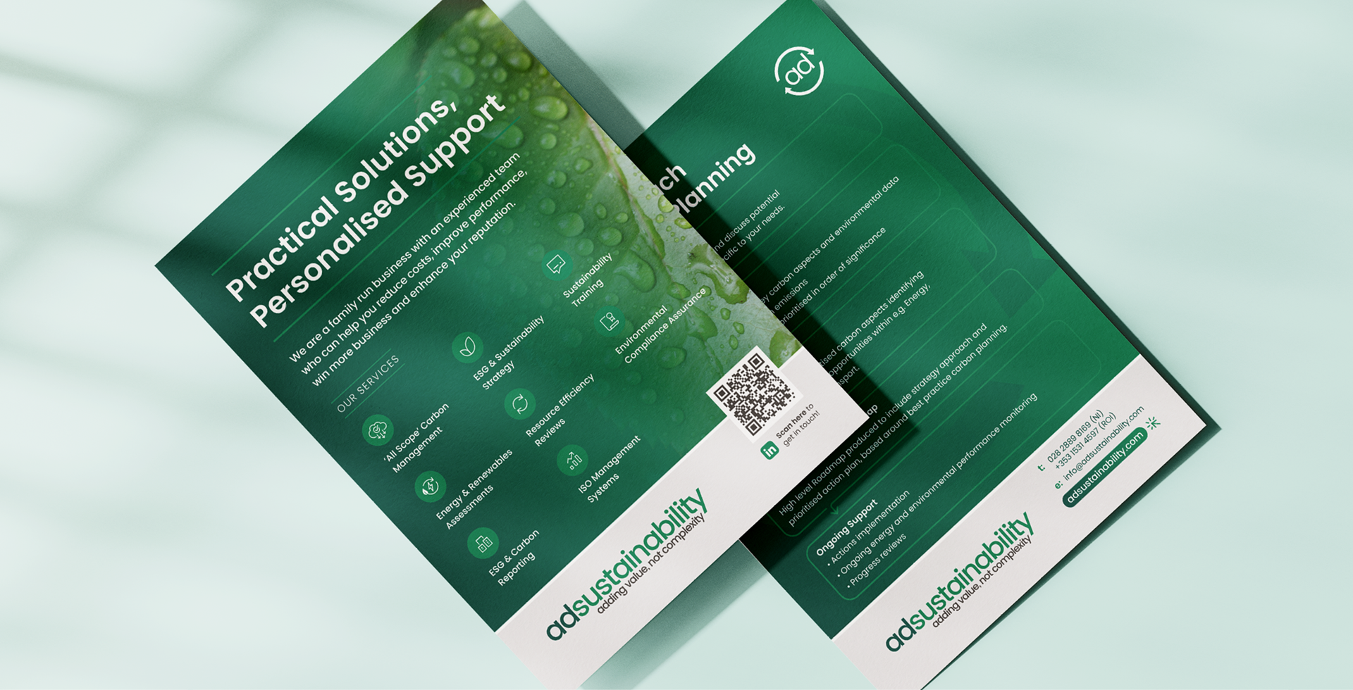 We are proud to have worked alongside Adsustainability for over two years, providing an on-going high quality design service for this incredible environmental consultancy. This has brought brand consistency across their customer touch points, helping the business to look professional and grow.